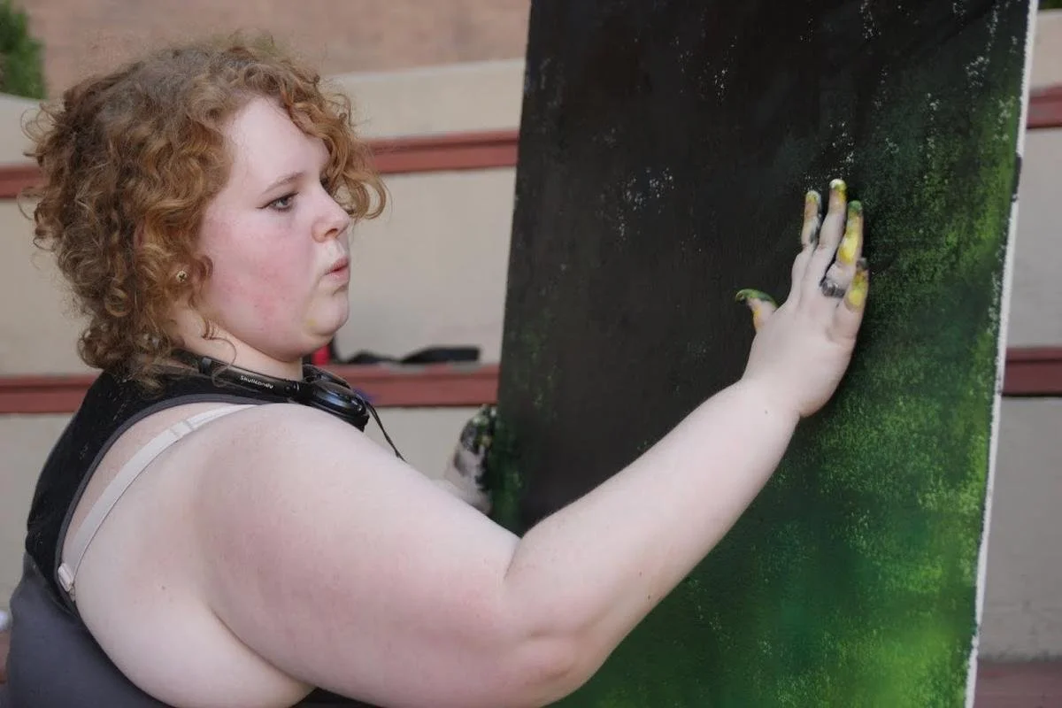 Darbi Dugan at work early during the event. “I got something going on. I don’t know completely yet (what it will be),” Dugan said. Her finished piece was awarded second place.