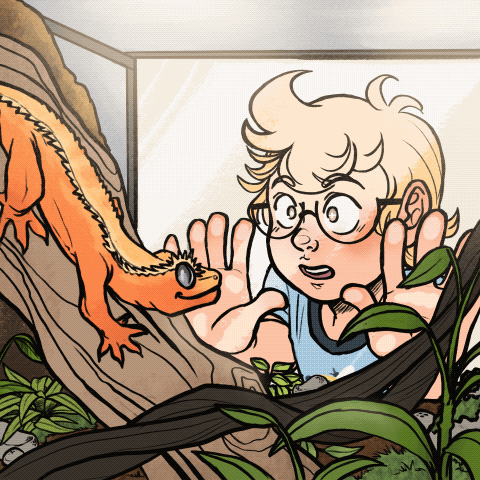 Ultimately, I settled with a design based on the likeness of a crested gecko. I thought their natural dopey features would fit perfectly the cartoony, child-like style I wanted for this project. But something about those never blinding round eyes…make him seem oddly intimidating despite the friendly smile.